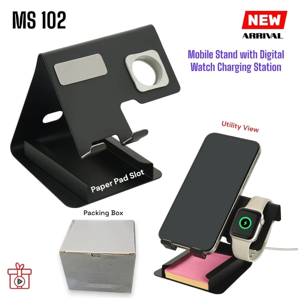 MS 102 Mobile Stand with Digital Watch Stand with Business Card Slot