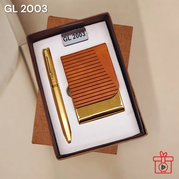 GL 2003 Tan Gold Pen & Card Holder Set