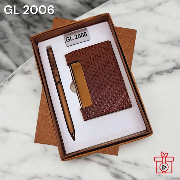 GL 2006 Brown Rose Gold Pen & Card Holder Set