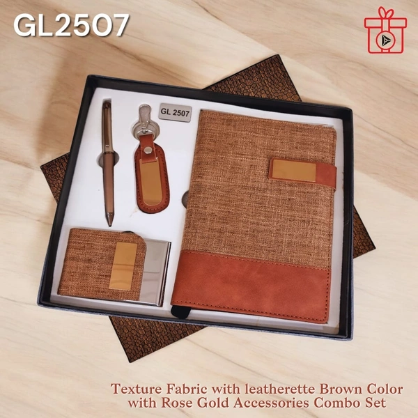 Four in one Two Tone Brown texture Combo Set (Metal Pen, Metal Keychain, A5 Notebook, Metal PU Card Holder