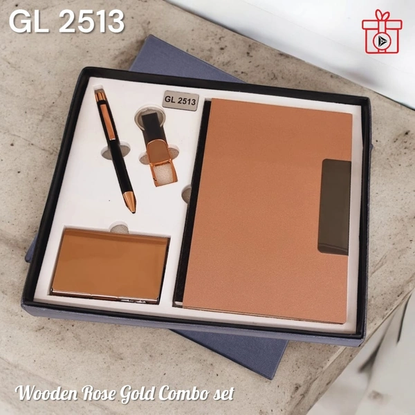 Four in one Wooden Rose Black Combo Set (Metal Pen, Metal Keychain, A5 Notebook, Metal PU Card Holder