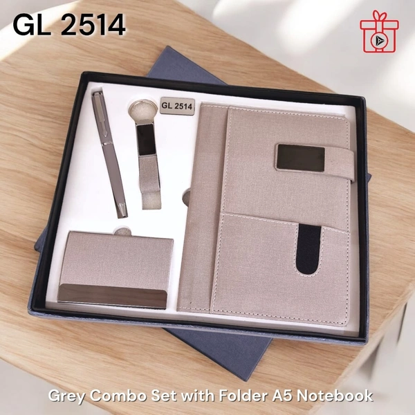 Four in one Grey texture Combo Set (Metal Pen, Metal Keychain, A5 Notebook, Metal PU Card Holder