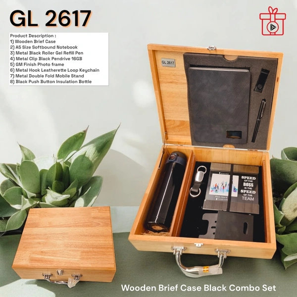 GL 2617 Wooden Brief case 7 in 1 Black combo Welcome Kit