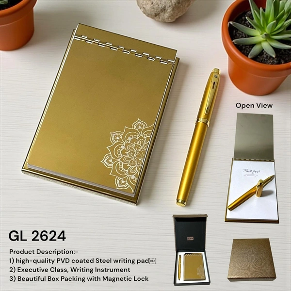 Looking to transform your workspace into a haven of sophistication and organization? The GL 2624 Stainless Steel Gold PVD Coated Paper Pad Stand Set from Ambito Gifts is the perfect solution. Designed with elegance and functionality in mind, this stunning set combines timeless aesthetics with durable craftsmanship, making it an essential addition to any desk or office setup.