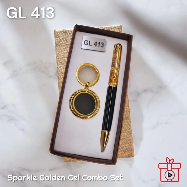 GL 413 Black Gold Zari Pen & Keychain Set