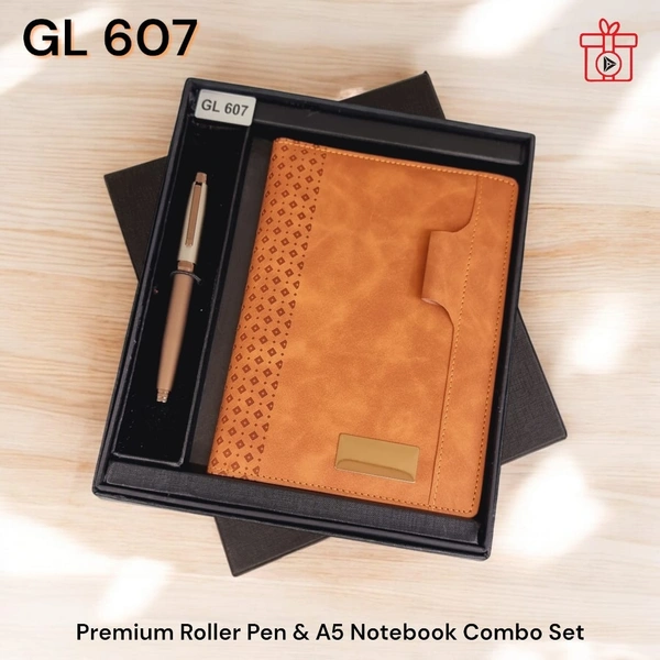 GL 607 Tan/Rose Gold Color Pen & Notebook Set