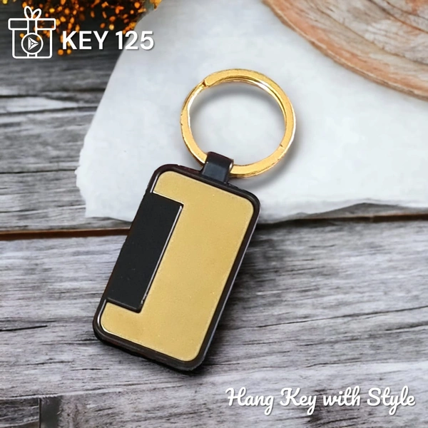 Rectangle with Mat Black and Gold Steel PVD Coated Metal Keychain