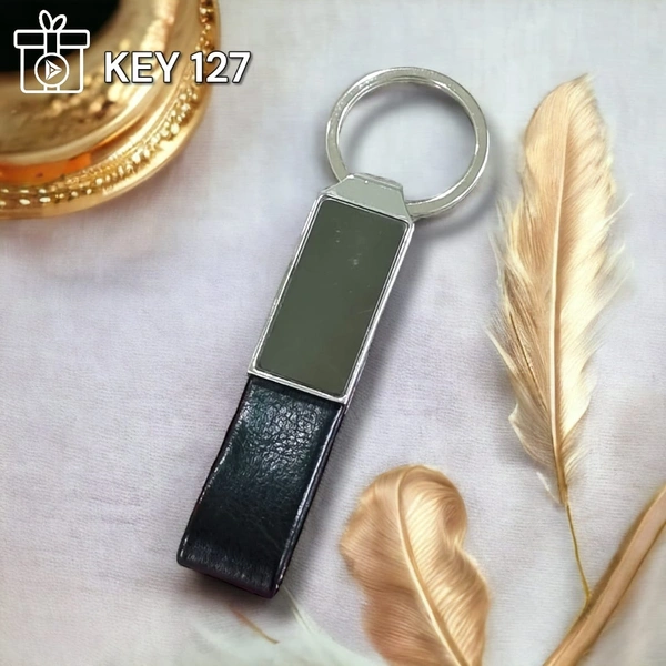 Core Metal with Leatherette Loop Keychain with GM Steel PVD Coated Label for Laser Printing