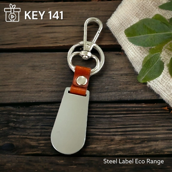 Two Steel Label with Wood and Leatherette Loop with Dock Hook with Ring Keychain