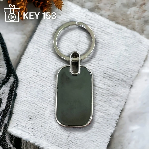 Metal Round Rectangle with GM PVD Steel Two Side Label Keychain