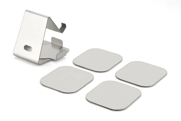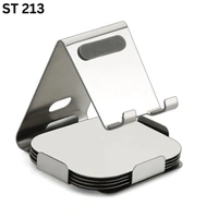 Crafted with high-quality steel, this mobile stand is as stylish as it is durable. Its unique design not only provides a sturdy platform for your mobile devices but also includes an integrated set of four coasters, making it a multifunctional addition to your desk, bedside, or living space.