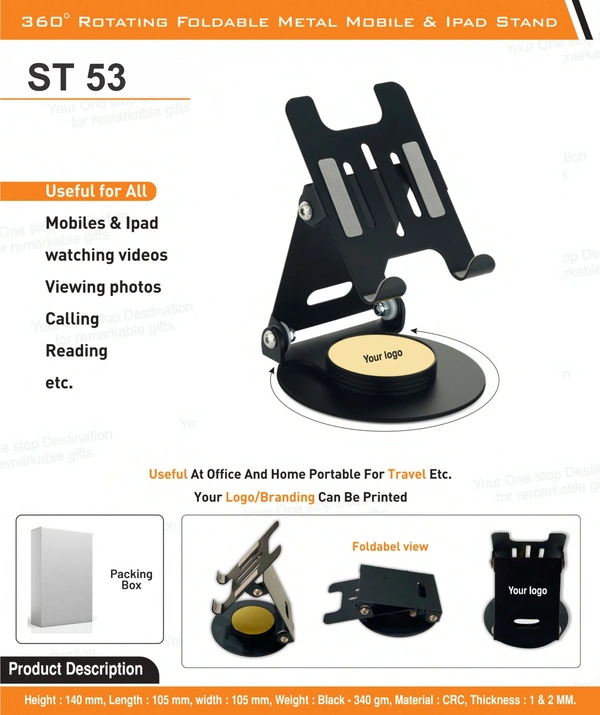 ST 53 (360 degree Rotating Double Foldable Mobile cum Tablet Stand)